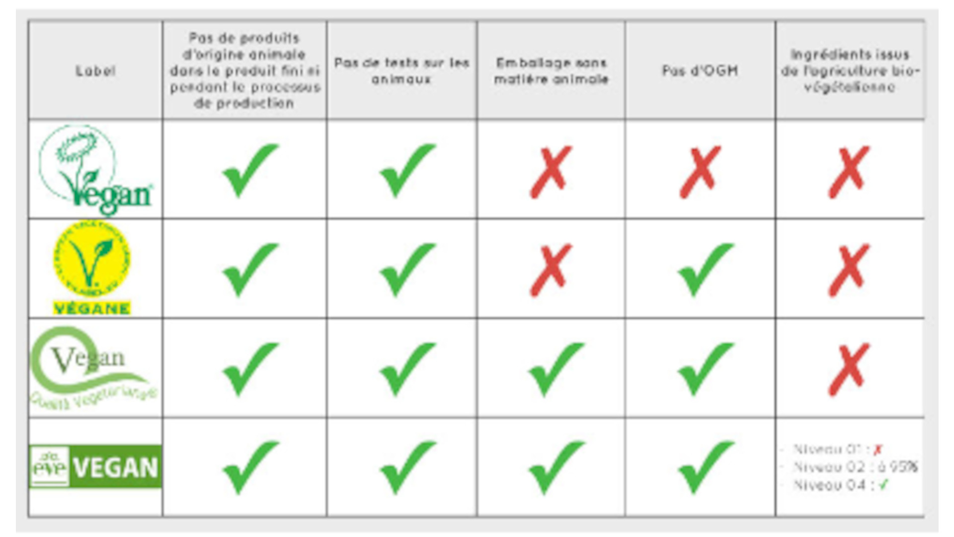 Ainsi chaque label dit vegan est différent, cependant, nous retrouvons des paramètres identiques et communs à tous. L’absence de tests sur les animaux et l’absence totale de produits d’origine animale sont les deux piliers communs de ces labels. La question de l’emballage est également posée. Tous ces organismes opèrent à différents niveaux et concourent à la réussite de ces logos.